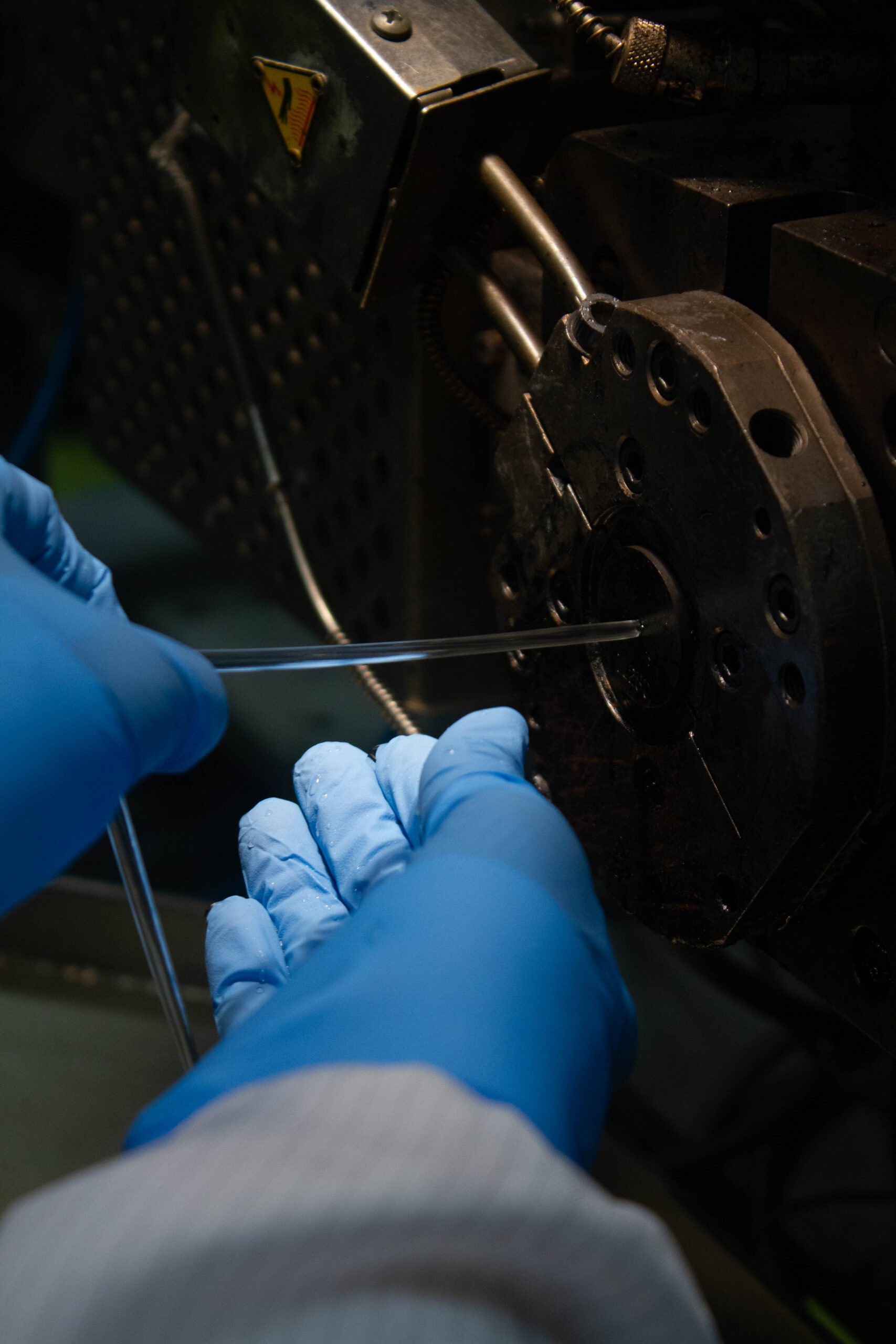 Extrusion is a critical process that requires meticulous control of every parameter. MDE uses automated lines equipped with in-line laser control systems to constantly measure the diameter, wall thickness, and lumen concentricity, ensuring maximum micrometric precision and a repeatable, validated process.